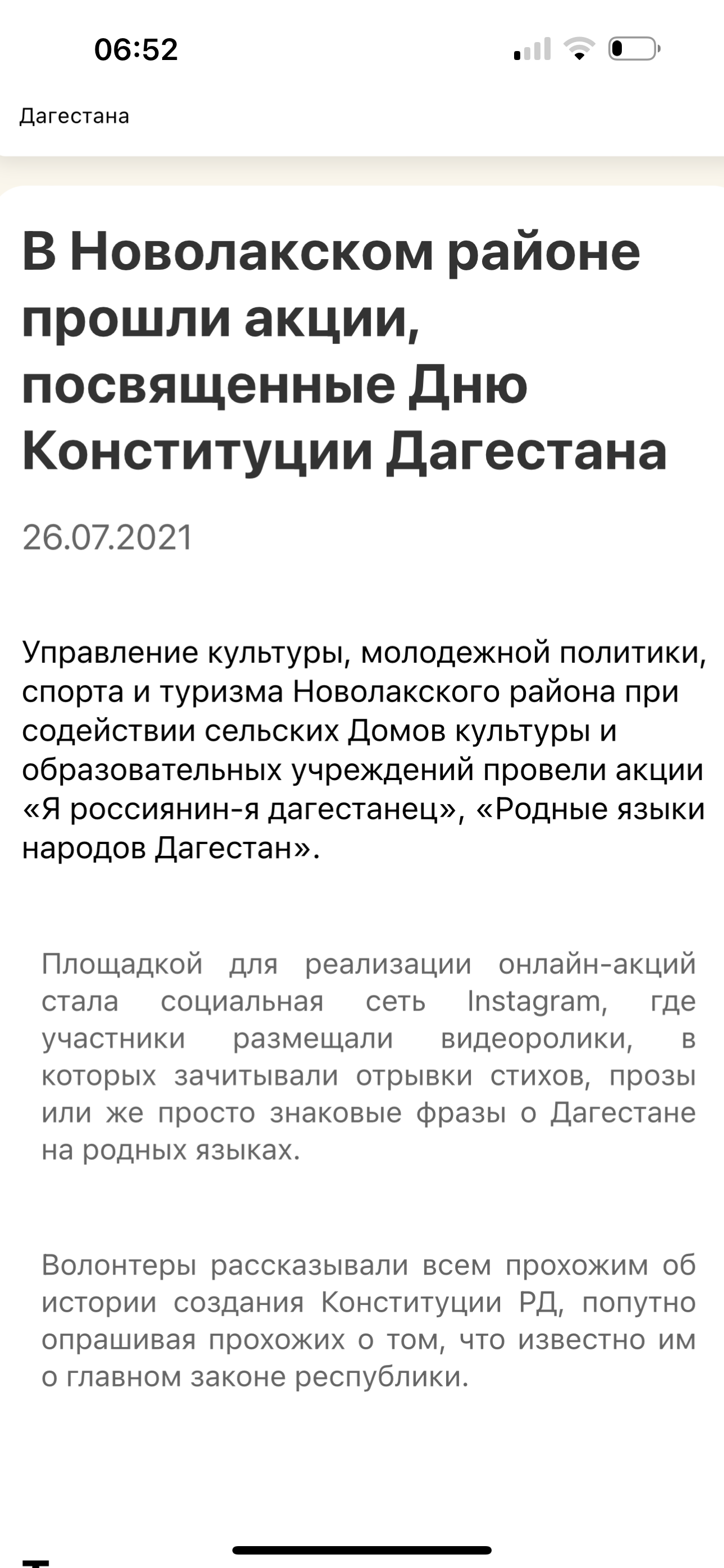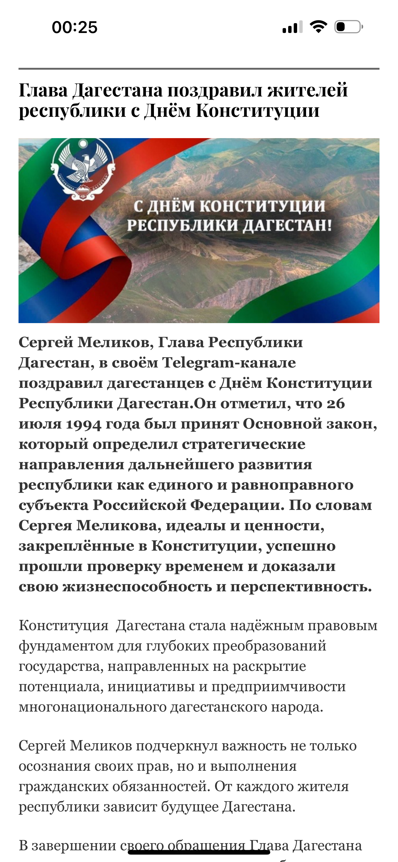 | 26 Июля 2025года в Новолакском районе прошли акции посвященные к дню Конституции Дагестана | версия для печати |